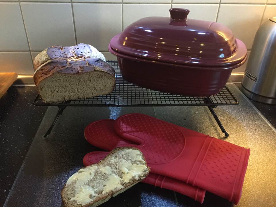 Mein Brot schmeckt fantastisch und ist wirklich wie aus einem Steinöfen. Ich bekommt eine wunderbare Kruste hin und innen ist es super saftig.
