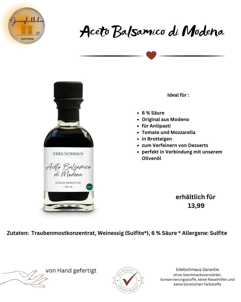 Unsere Essigzubereitungen werden auf Grundlage von ausgereiftem, mildem Weißweinessig und edlem Aceto Balsamico di Modena hergestellt. Ihre geringe Säure und die feinen Geschmacksvariationen machen sie zu ausdrucksstarken Begleitern von Salatdressings und Marinaden. Verwenden Sie sie auch zum Veredeln von Soßen und Desserts oder kreieren Sie einen außergewöhnlichen Aperitif mit Sekt und Prosecco.