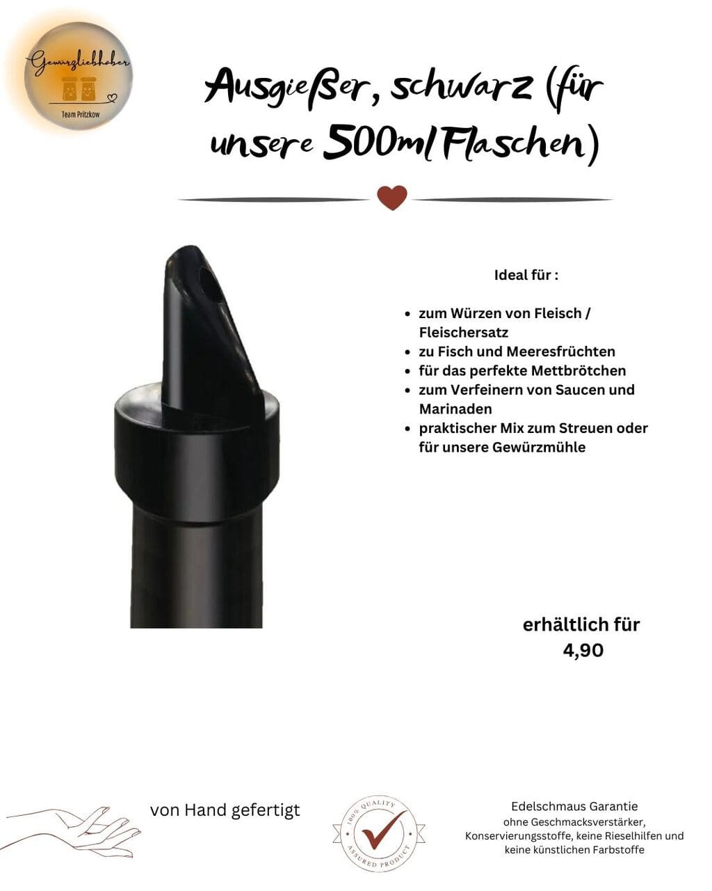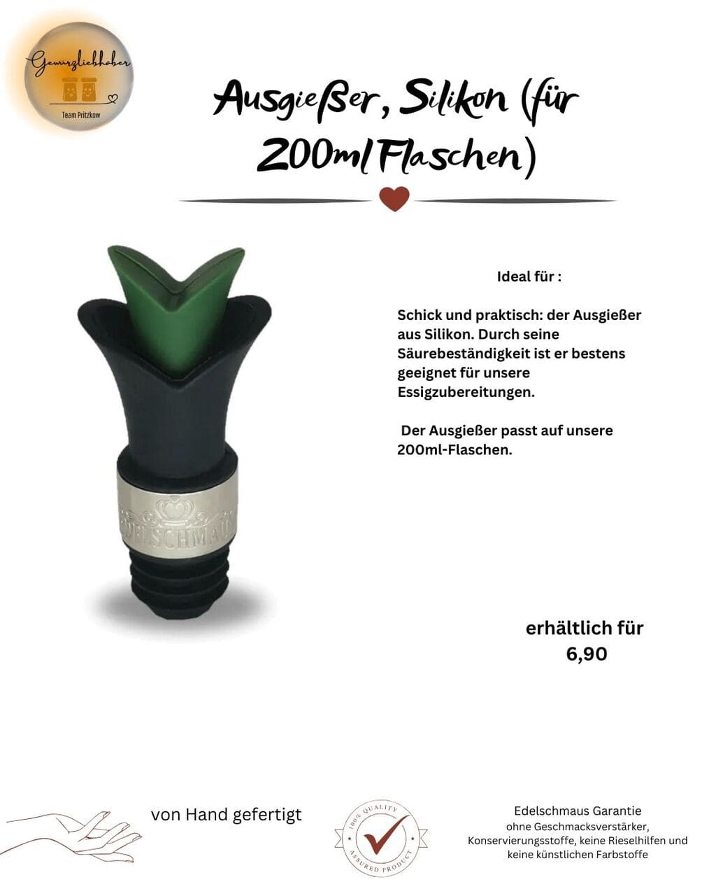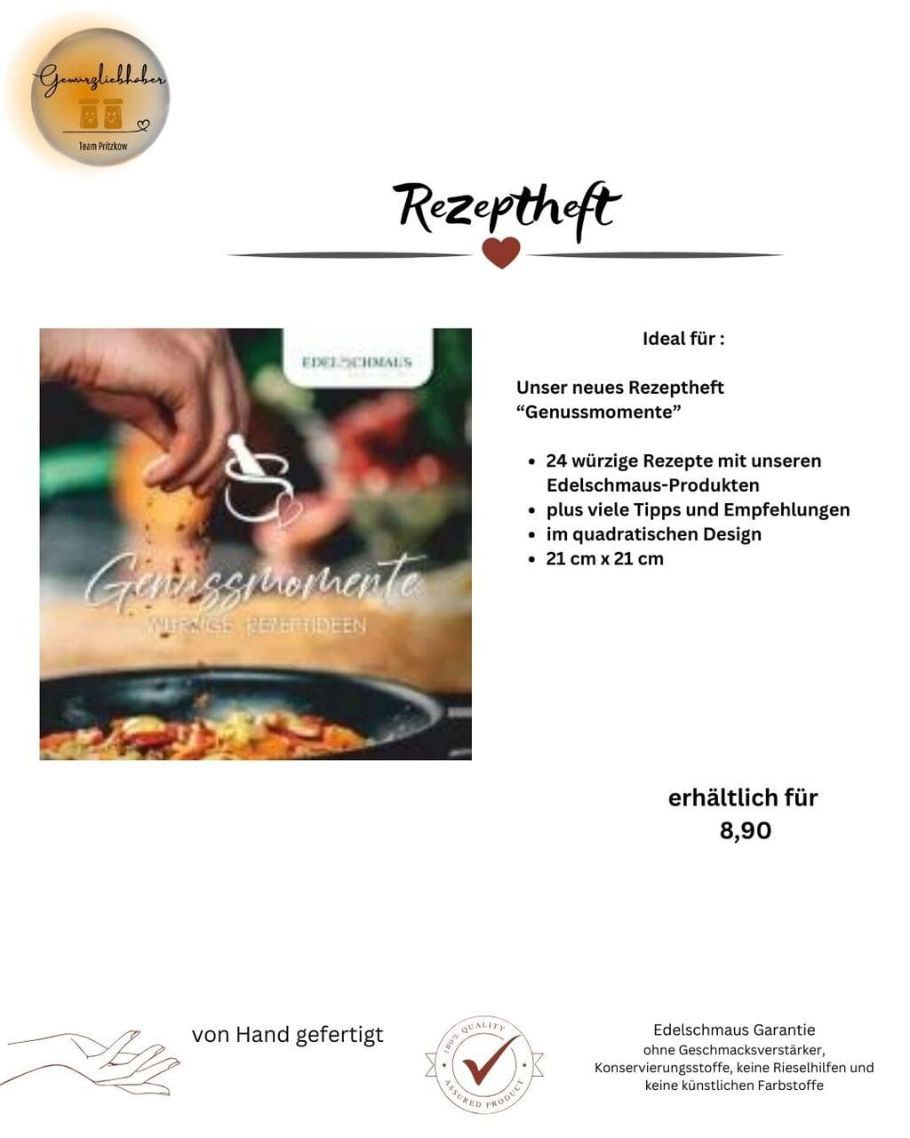 Wer gerne und viel kocht, weiß sie zu schätzen – praktische Küchenhelfer. Abgestimmt auf unsere Produkte haben wir Gewürzmühlen und Ausgießer für Sie ausgewählt, mit denen das Kochen noch leichter von der Hand geht. Und in unserem Rezeptheft finden Sie appetitliche Inspirationen zum Nachkochen – natürlich mit unseren Edelschmaus Produkten!