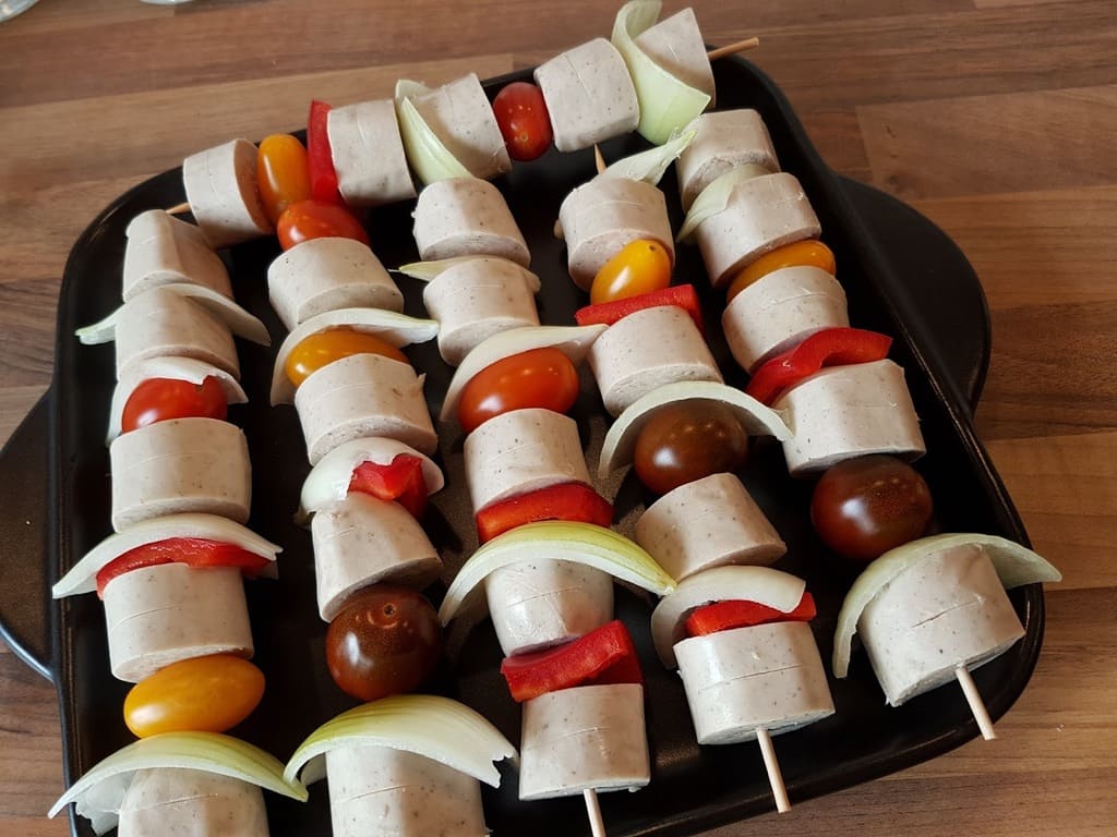 Bratwurst Schaschlik Spießen auf dem kleinen RockCrok von Agnes