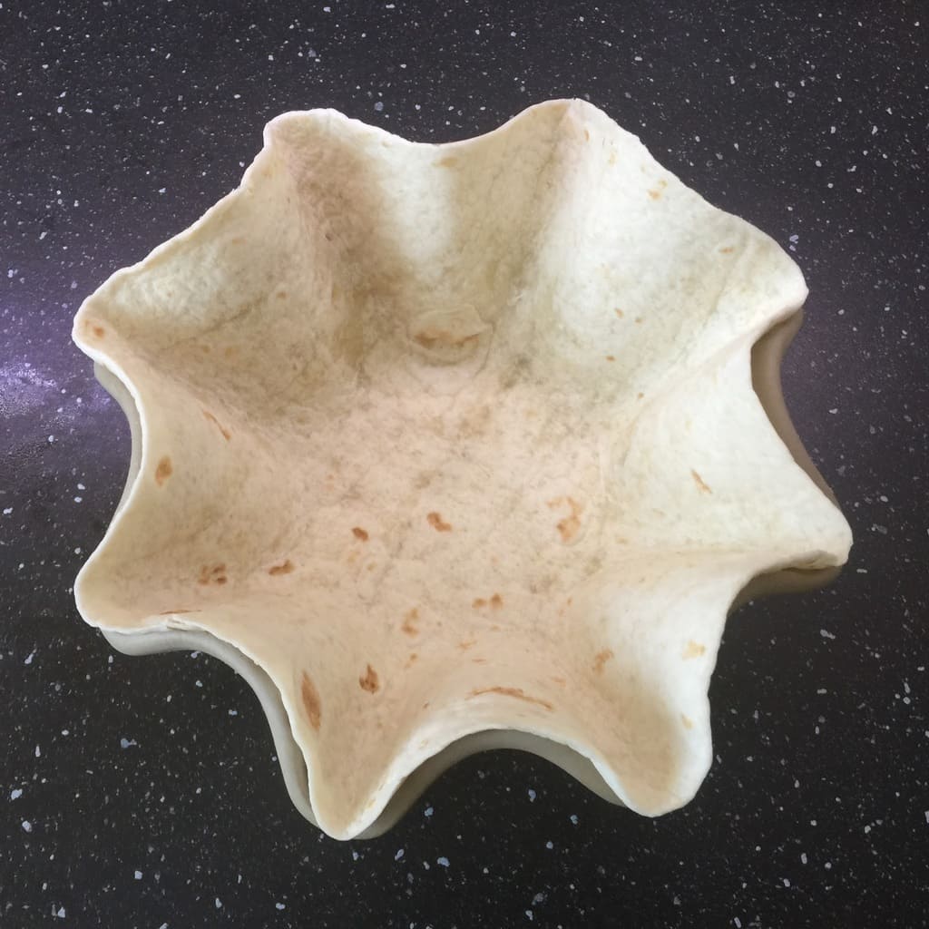 Ich nehme einen Wrap und gebe diesen in die Körbchenform von Pampered Chef.