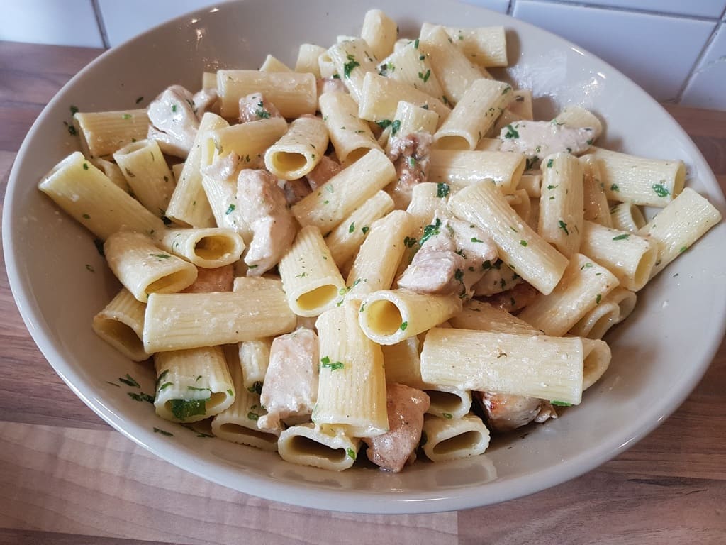 Chicken Alfredo mit Pasta aus der großen Servierschüssel von Agnes