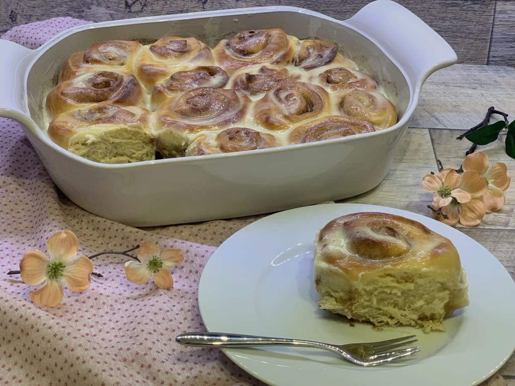 über die warmen Zimtschnecken geben.