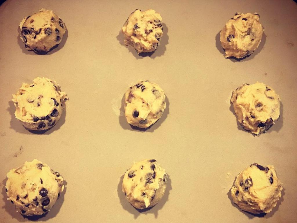 Die Cookies für ca. 10 – 15 Min bei 230 Grad Ober- / Unterhitze backen, auf ein Kuchengitter stellen und 10 Min ruhen lassen.