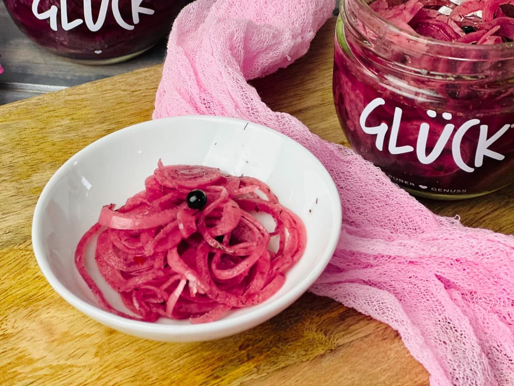 Eingelegte rote Zwiebeln für Burger und Hot Dogs