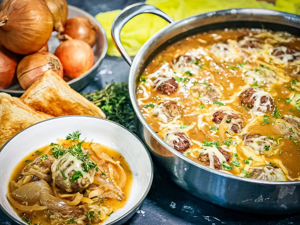 Ihr Lieben, heute werden hier zwei Rezepte vereint. Die klassische französische Zwiebelsuppe mit würzig saftigen Meatballs. Gradios im Geschmack und eine Sünde wert.