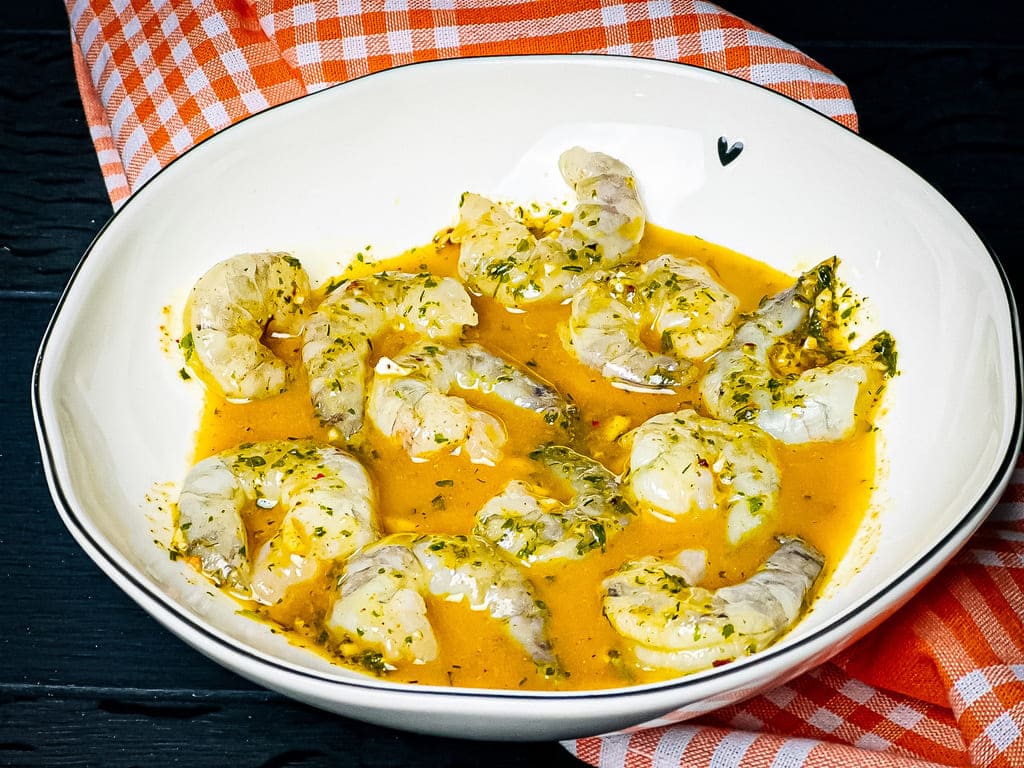 Garnelen mindestens 1 Stunde marinieren lassen und dann z.B. in der Pfanne braten