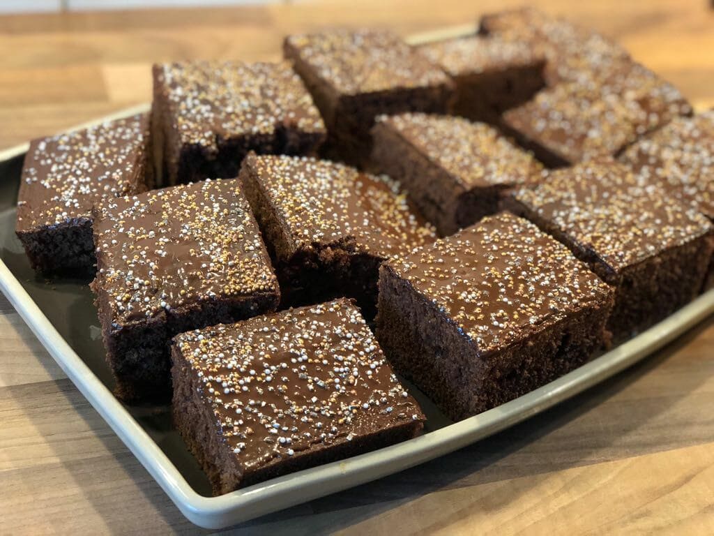 100 g Kuvertüre bitte im Wasserbad flüssig machen wenn der Gewürzkuchen gebacken wird.