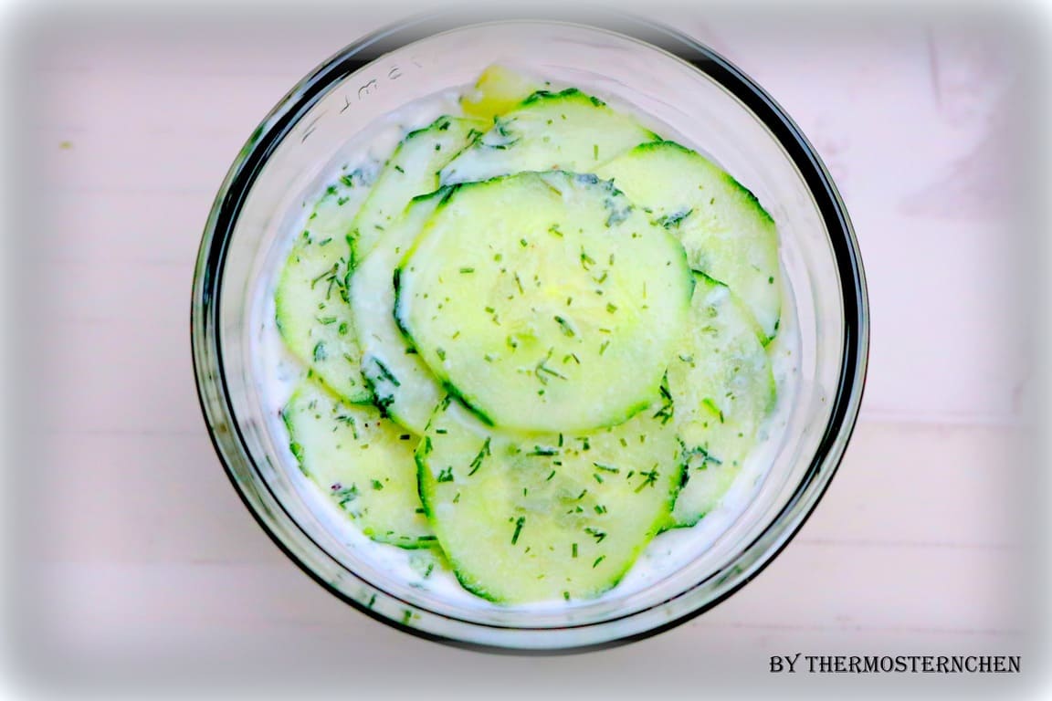 Der Gurkensalat sollte min. 30 Min gut durchziehen.