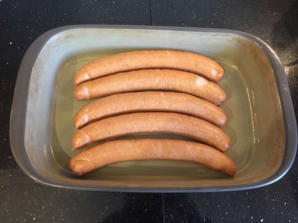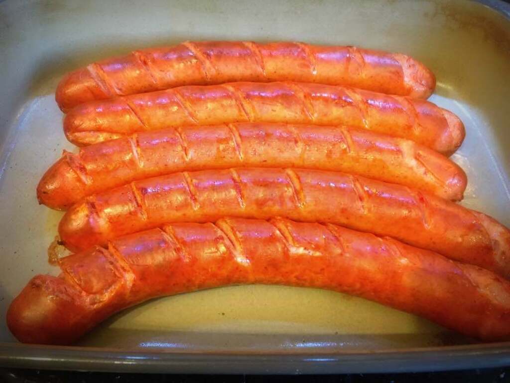 Bevor wir beginnen die Currysauce fertigzustellen, geben wir die Krakauer in die Ofenhexe.