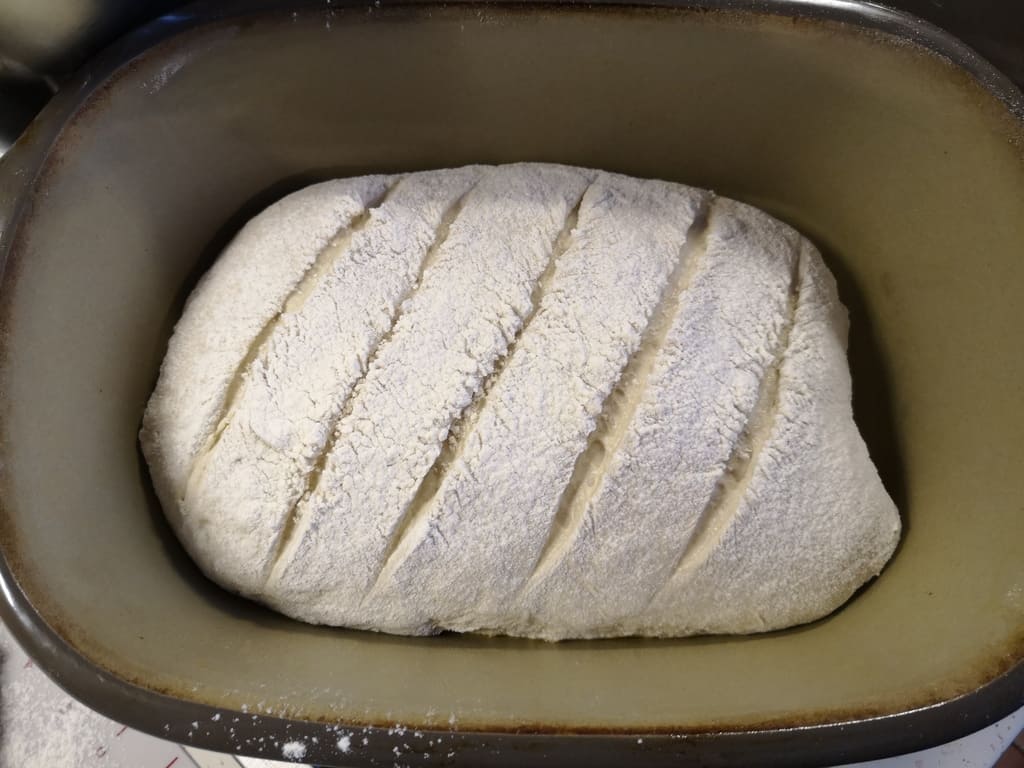 Nun Formen in die Stoneware geben, bemehlen, einschneiden und mit dem Deckel verschließen.