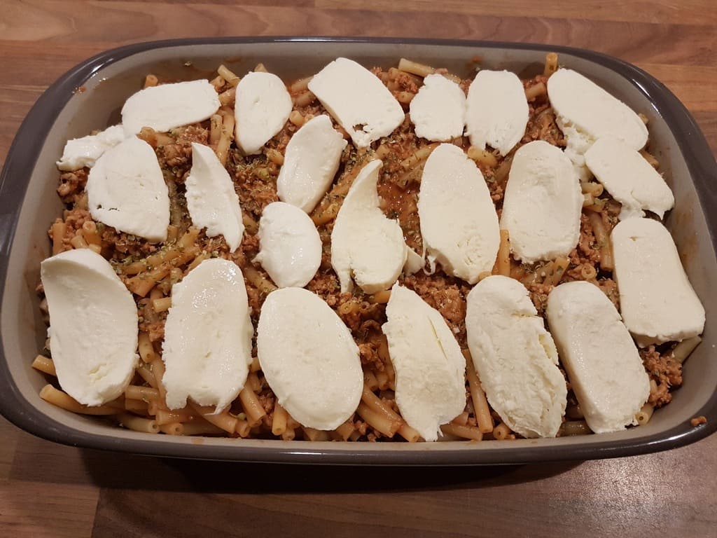 Maccaroniauflauf mit Mozzarella Häubchen in der großen Ofenhexe von Agnes