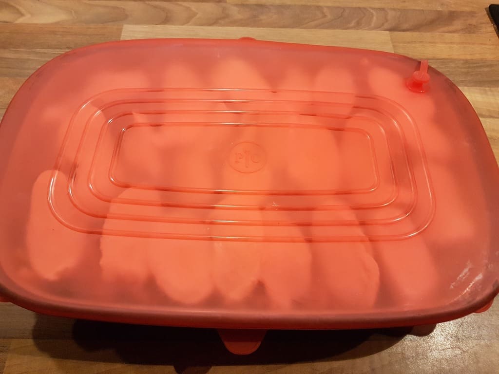 Den Strechi drüberziehen und im vorgeheiztem Backofen, unterste Schiene für 20 Min bei 200 Grad Ober- / Unterhitze backen lassen.