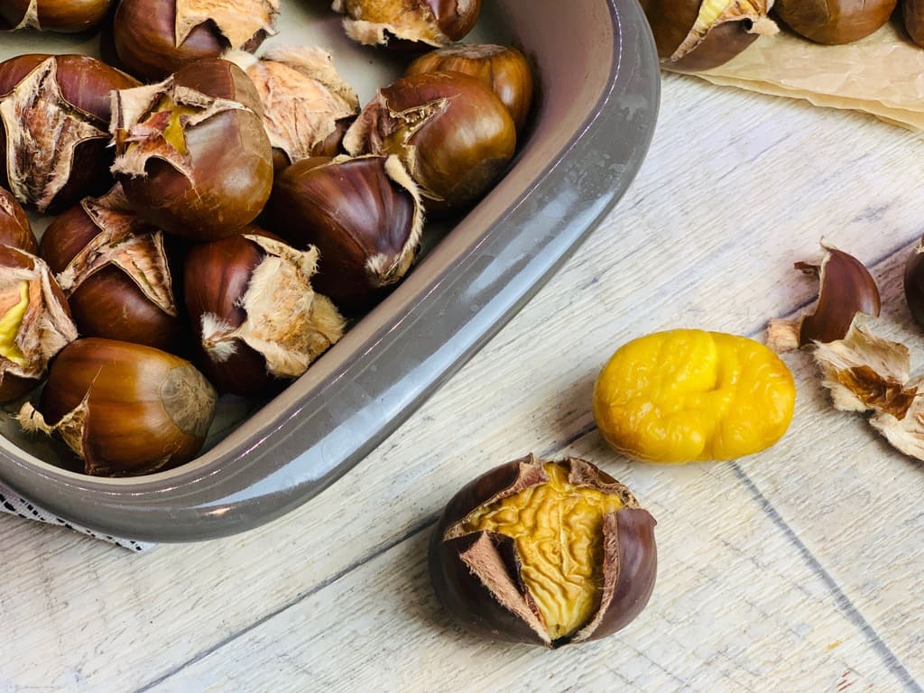 Der Herbst ist nun endlich da und ich liebe es am Abend mit meinen Lieben auf der Couch in einer Decke eingemummelt zu sitzen und die Zeit zu genießen. Gebackene Maronen bieten sich hierfür geradezu an. Sie sind ganz schnell gemacht und so viel leckerer als Chips !