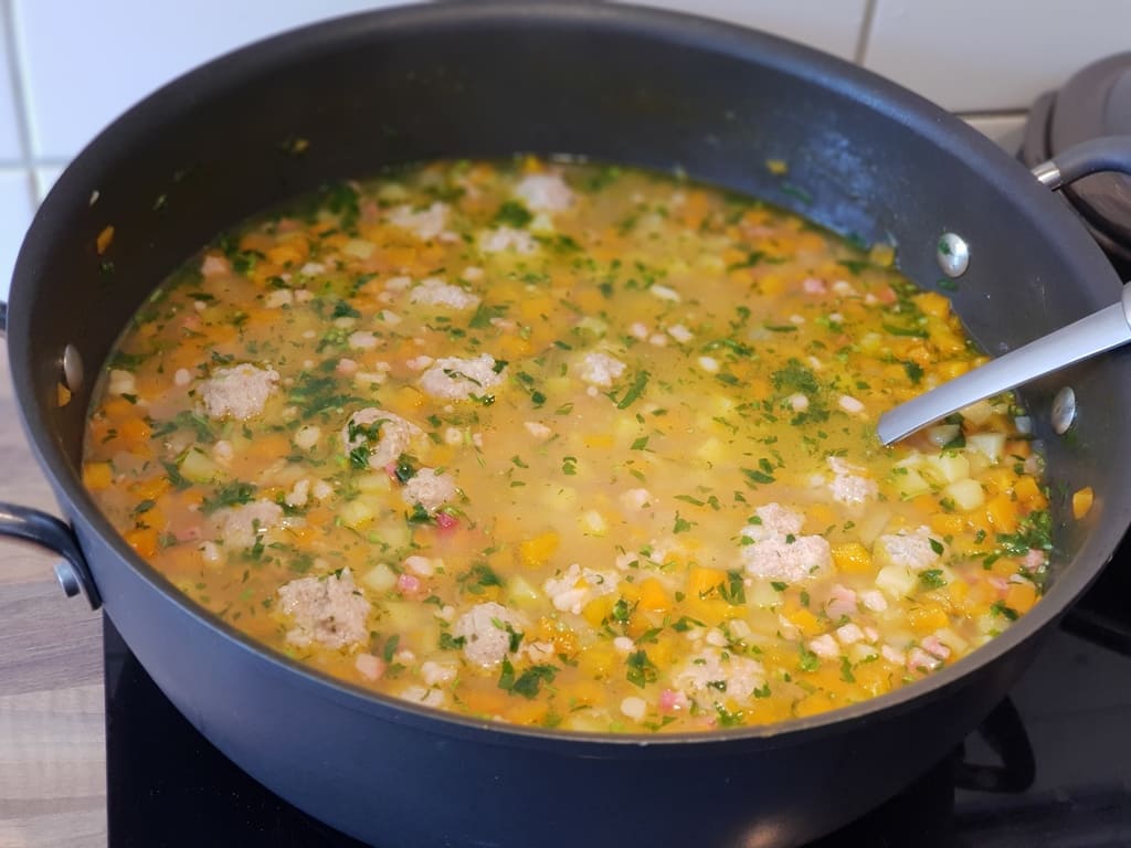 Möhreneintopf mit Fleischbällchen und Grießklösschen im APP von Agnes