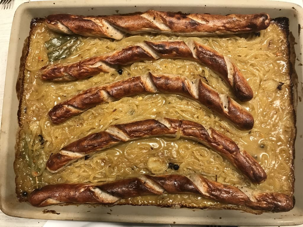 Nürnberger Rostbratwurst mit Zwiebelsauce vom großen Ofenzauberer von Daniela Neef