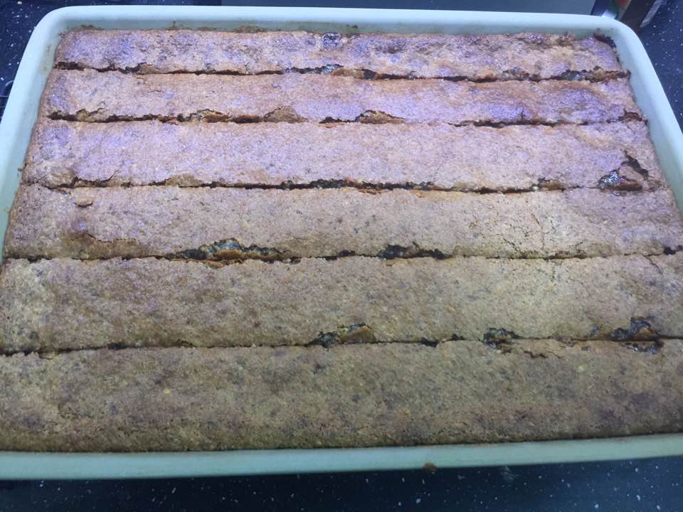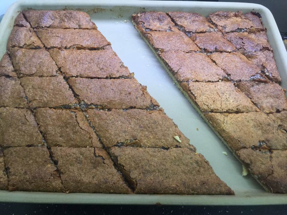 Die Backofentemperatur auf  180 Grad reduzieren und die Nussecken für 30 Min bräunen lassen.