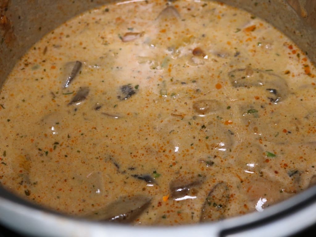 Gemüsebrühe, Sahne, Soja Sauce, 8 Kräuter ( tiefgefroren ), Salz, Pfeffer und Piment