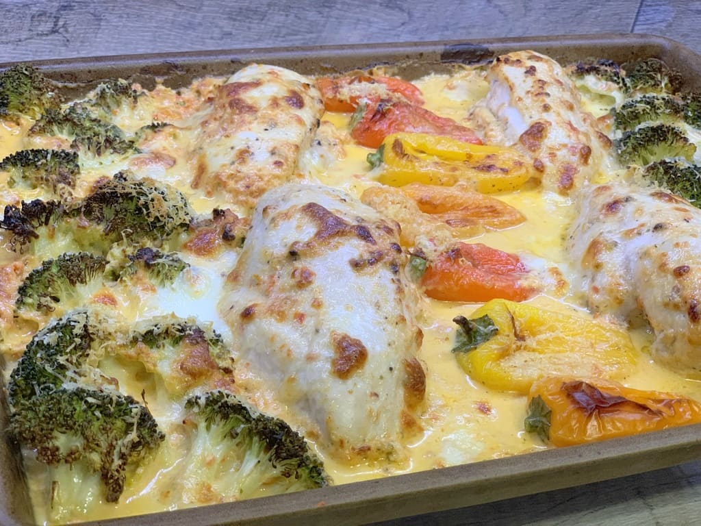 Parmesan Hähnchen mit Gemüse in Kräuterrahmen