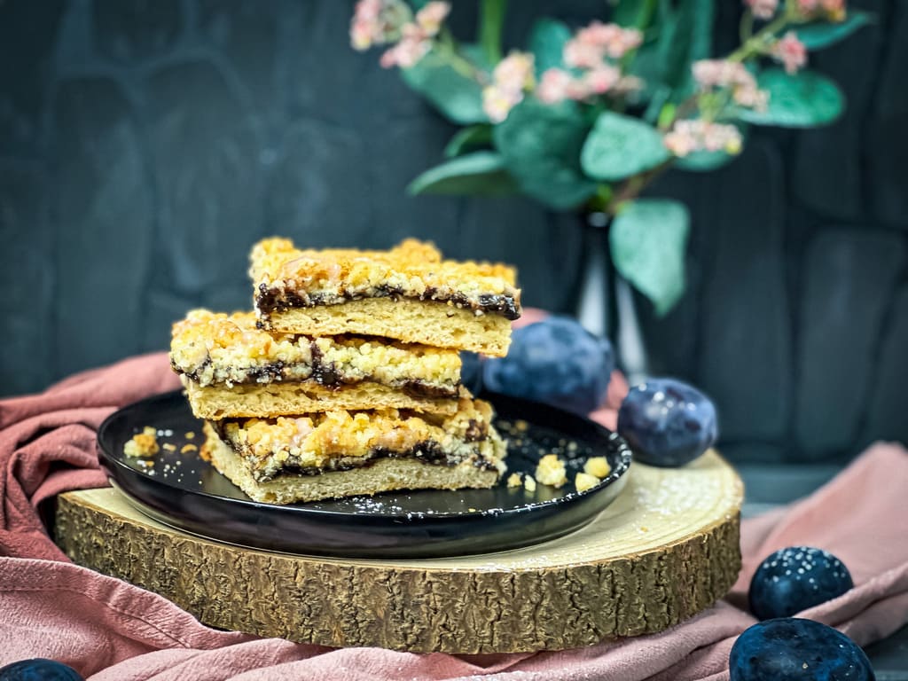 Streusel über das Pflaumenmus verteilen und für cs. 30 Minuten im Backofen auf der untersten Schiene goldgelb backen.