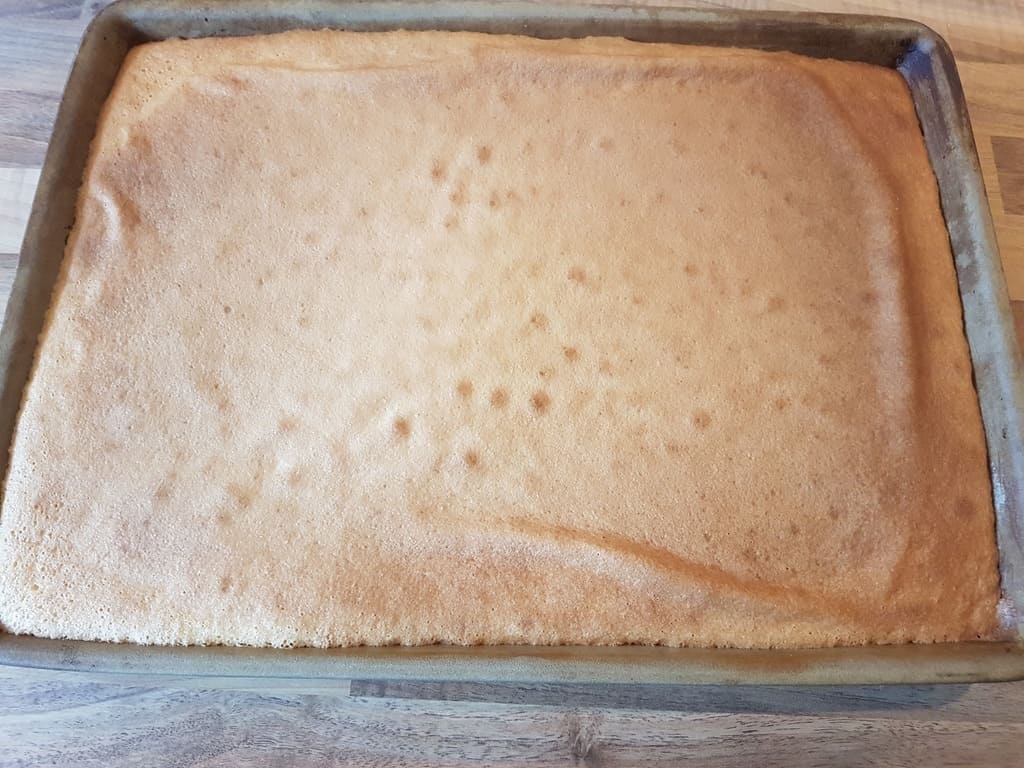 Nach dem Backen direkt die Pudding-Schmand Mischung auf den warmen Kuchen verteilen und abkühlen lassen.