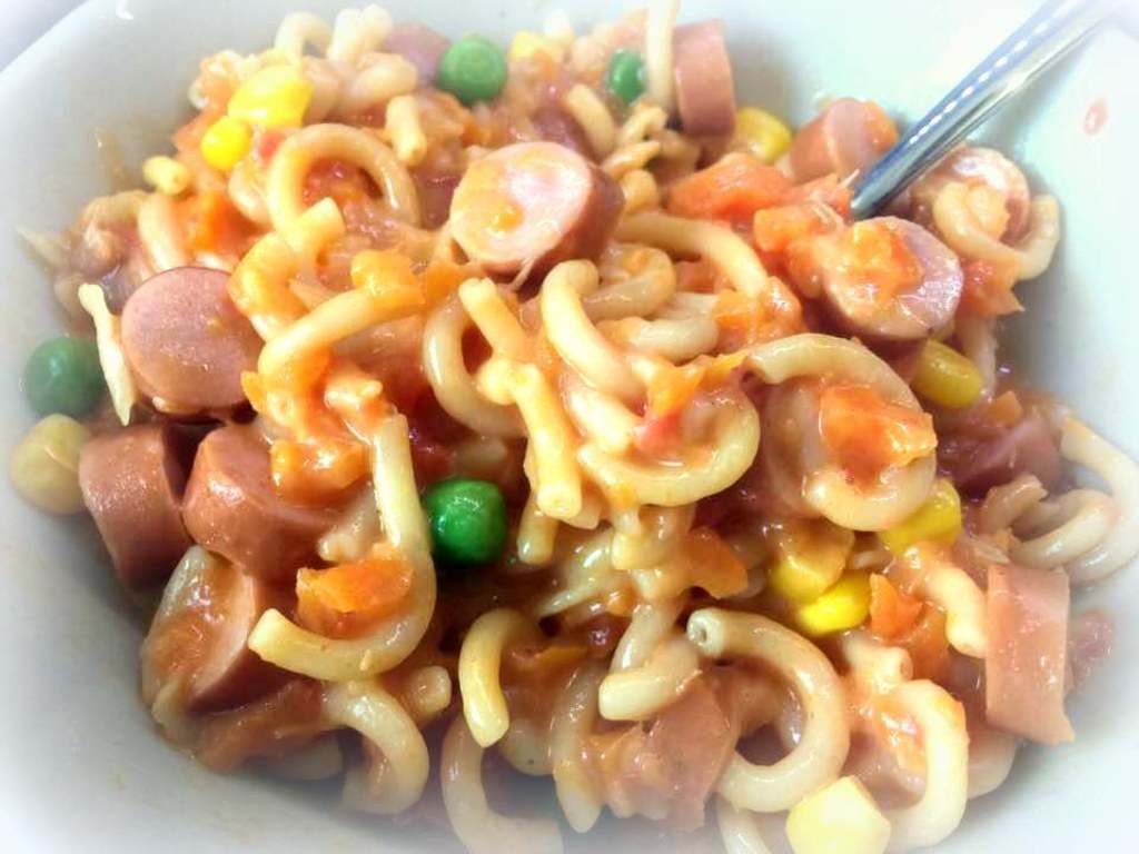 Die Nudeln nach Packungsanleitung seperat auf dem Herd kochen, abgießen und mit dem Gulasch servieren.
