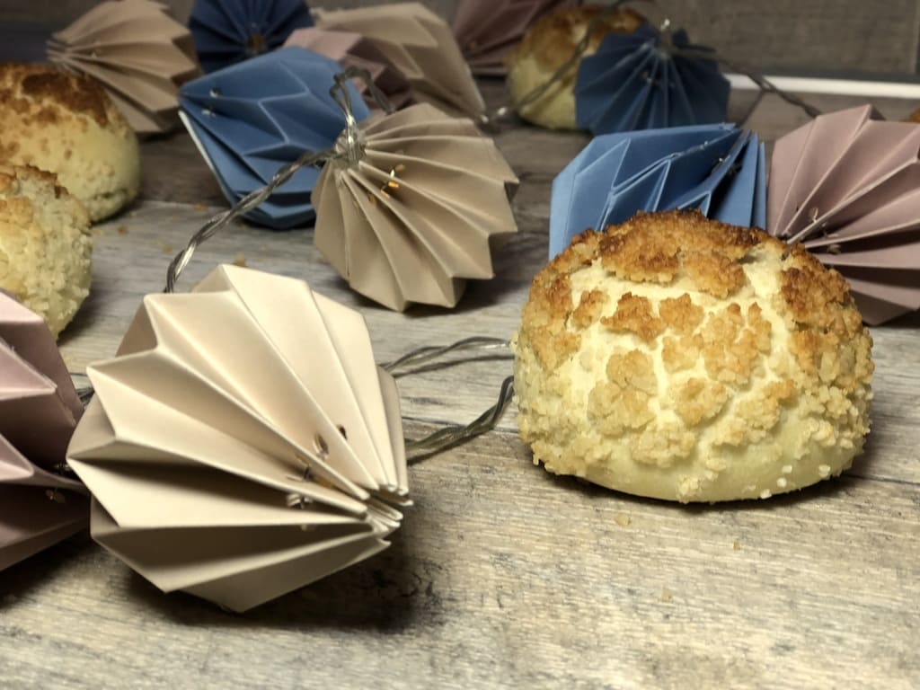 Die Brötchen auf ein Kuchengitter abkühlen lassen und genießen. Sie sind ganz soft und das Topping ist schön knackig.