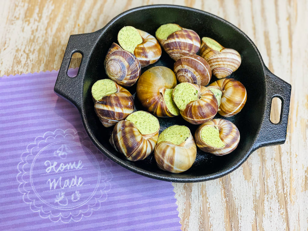 Die Pfännchen herausnehmen und die Weinbergschnecken zusammen mit einem Baguettebrötchen genießen.