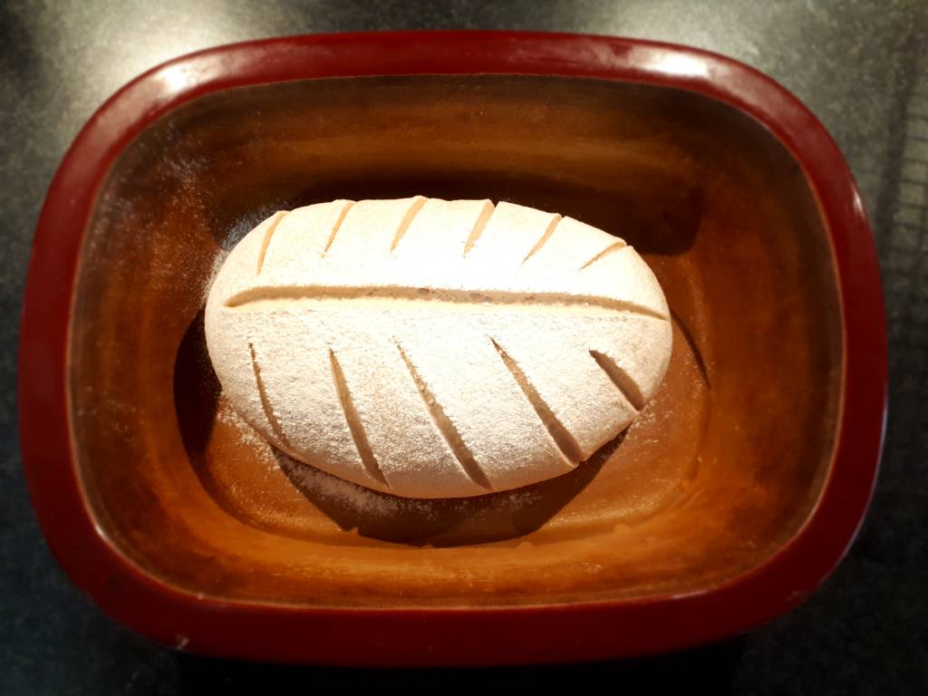 Mit Mehl bestäuben und mit einer scharfen Messer einschneiden.