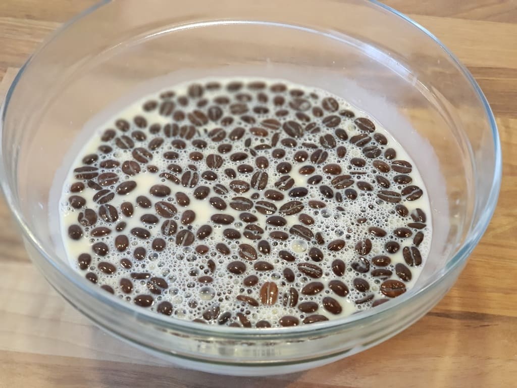 Nach 24 Std die Kaffeebohnen absieben.